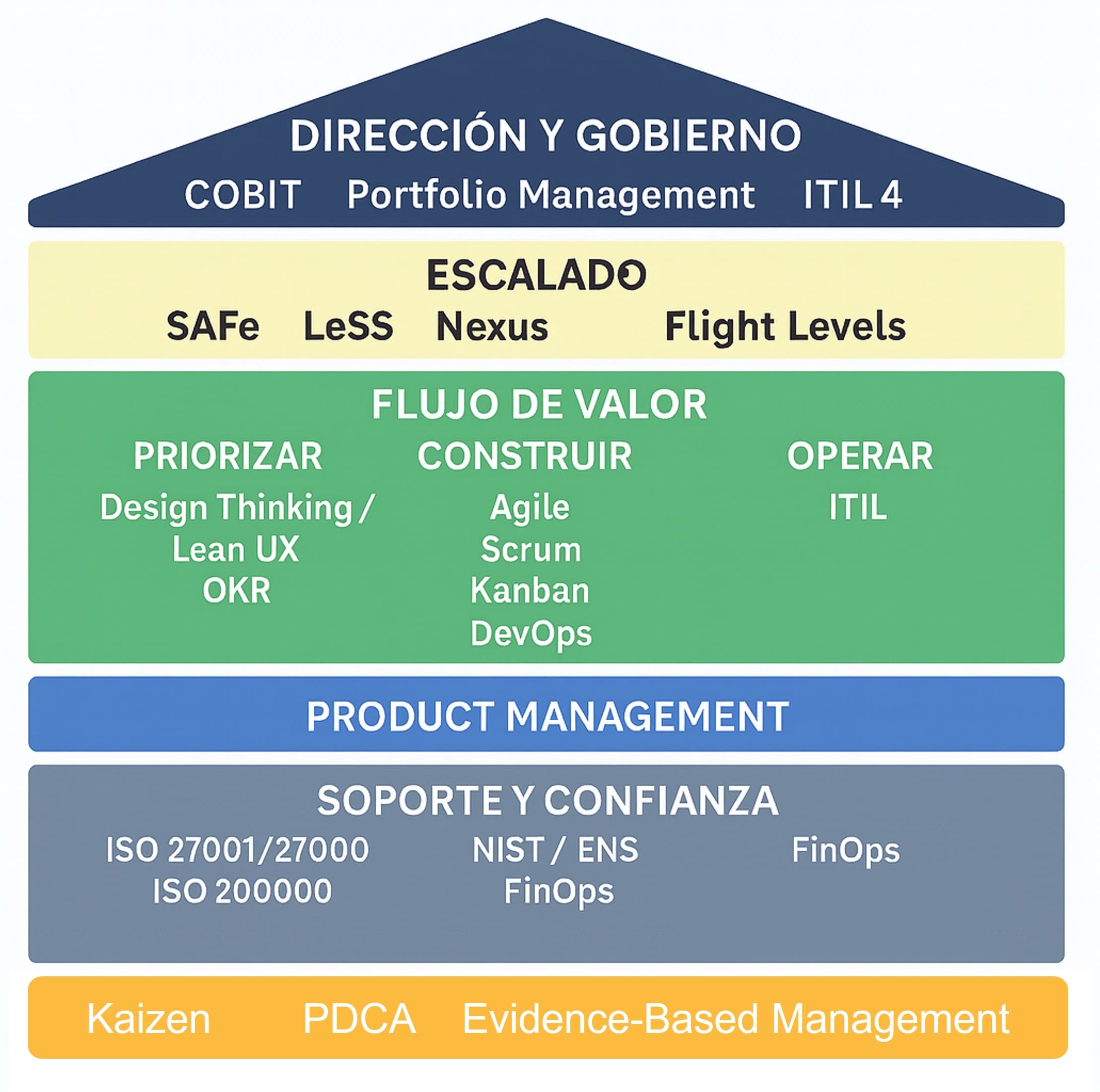 Marcos como COBIT, ITIL, ISO 27001 o Portfolio Management suelen verse como estructuras “corporativas”, pero en realidad su propósito es garantizar que la tecnología aporte valor de forma segura, sostenible y alineada con la estrategia.